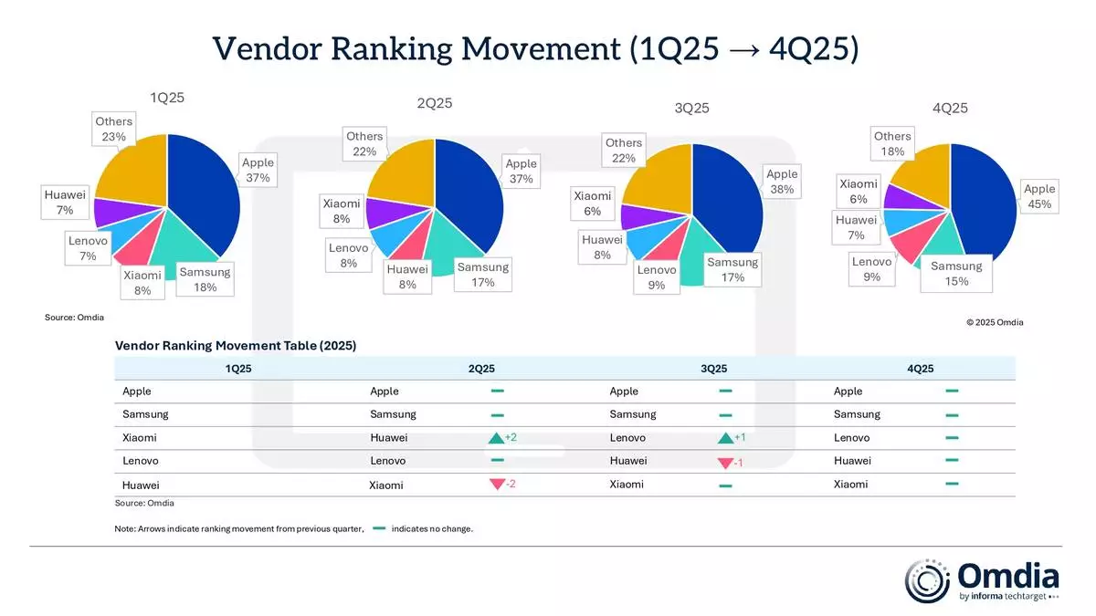 Vendor Ranking Movement (1Q25 → 4Q25)