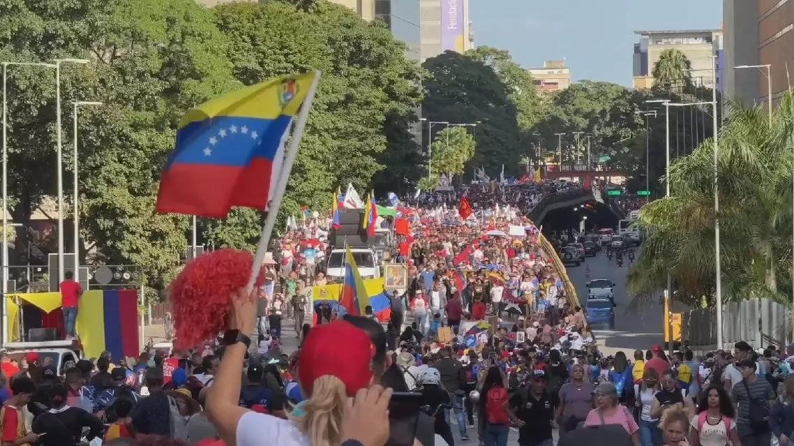 Thousands of people rallied in the Venezuelan capital of Caracas on Tuesday to condemn U.S. violation of Venezuelan sovereignty and demand the release of the country's President Nicolas Maduro and First Lady Cilia Flores, one month after they were seized by force during a U.S. military operation in Venezuela.