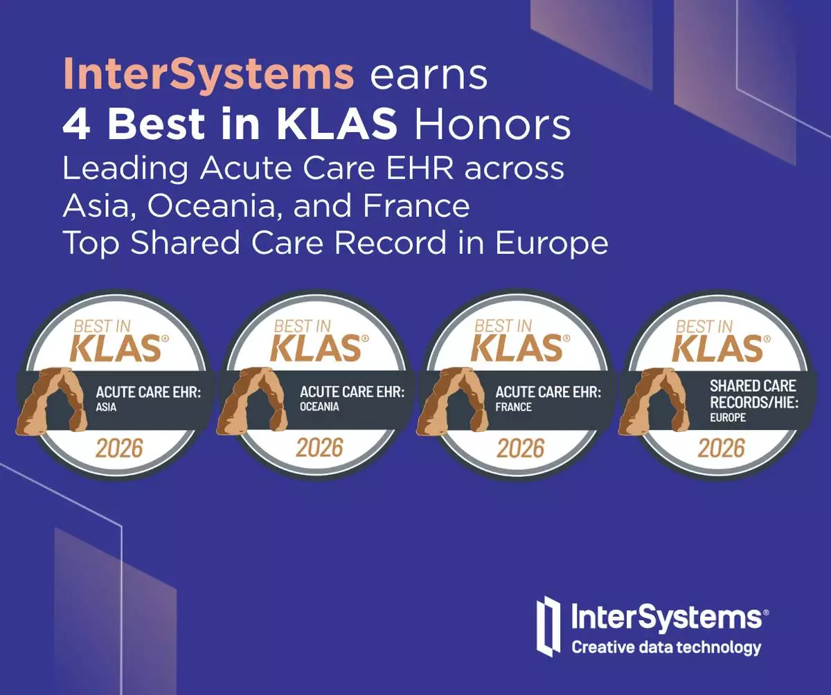 InterSystems, a creative data technology provider powering more than one billion health records globally, today announced it has received four Global 2026 Best in KLAS awards. The company earned a #1 ranking for Acute Care EHR in Asia, Oceania, and France, as well as for Shared Care Records in Europe.