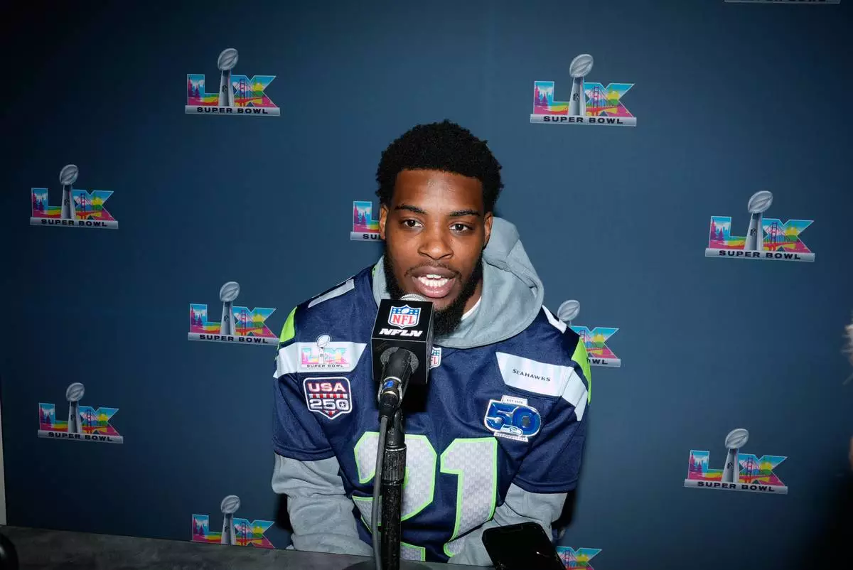 Seattle Seahawks cornerback Devon Witherspoon speaks during a news conference on Wednesday, Feb. 4, 2026, in San Jose, Calif., ahead of Super Bowl 60 between the New England Patriots and the Seattle Seahawks. (AP Photo/Brynn Anderson)
