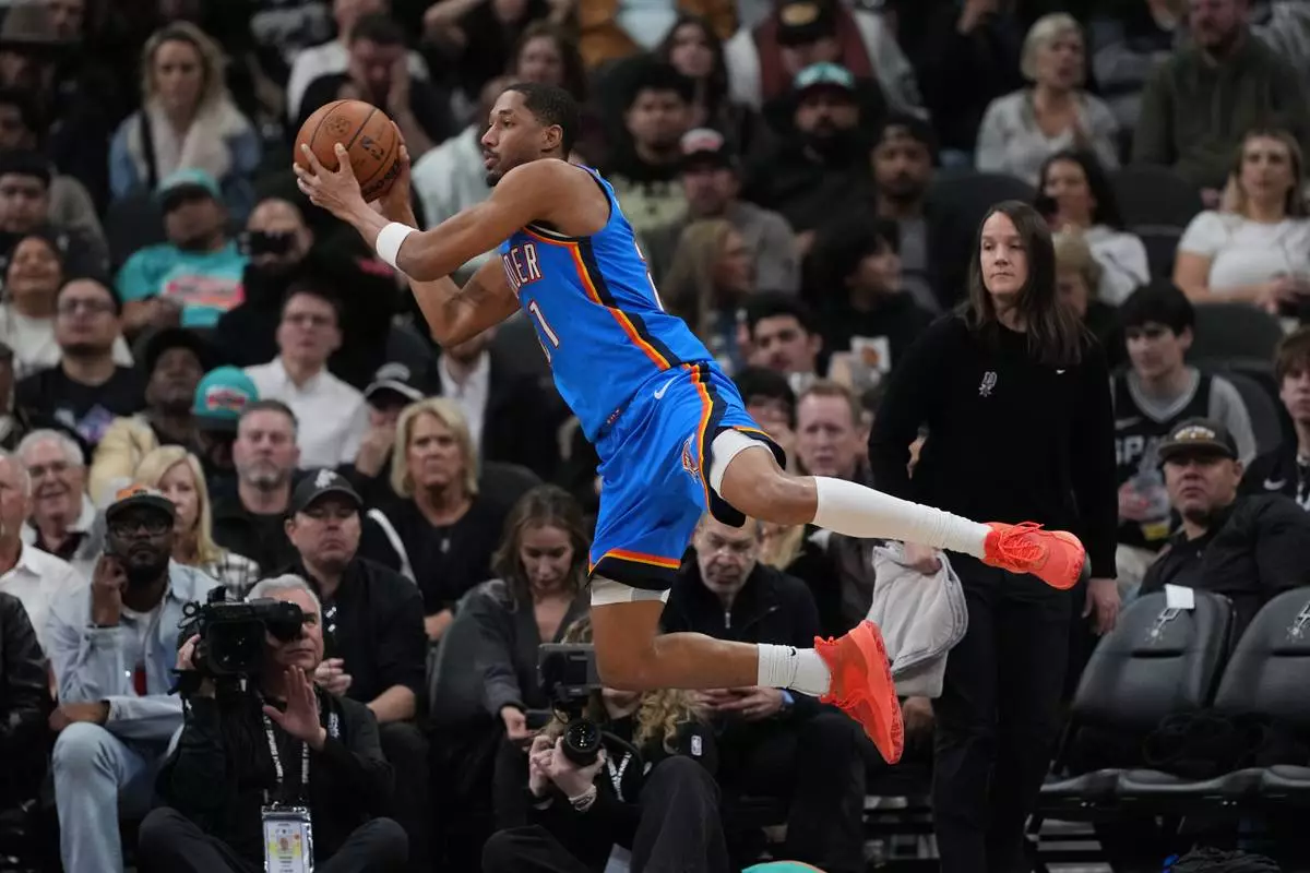 “He’s certainly a high-usage, high-impact player for us," Thunder coach Mark Daigneault said before the game at San Antonio. “So we’ve got to do it as a group and collectively, which is what we do when he’s on the bench and he’s not on the court.”