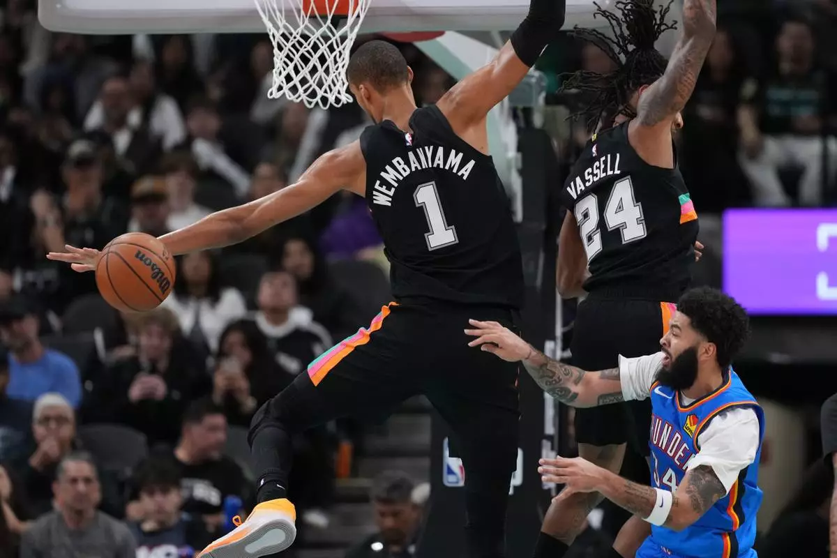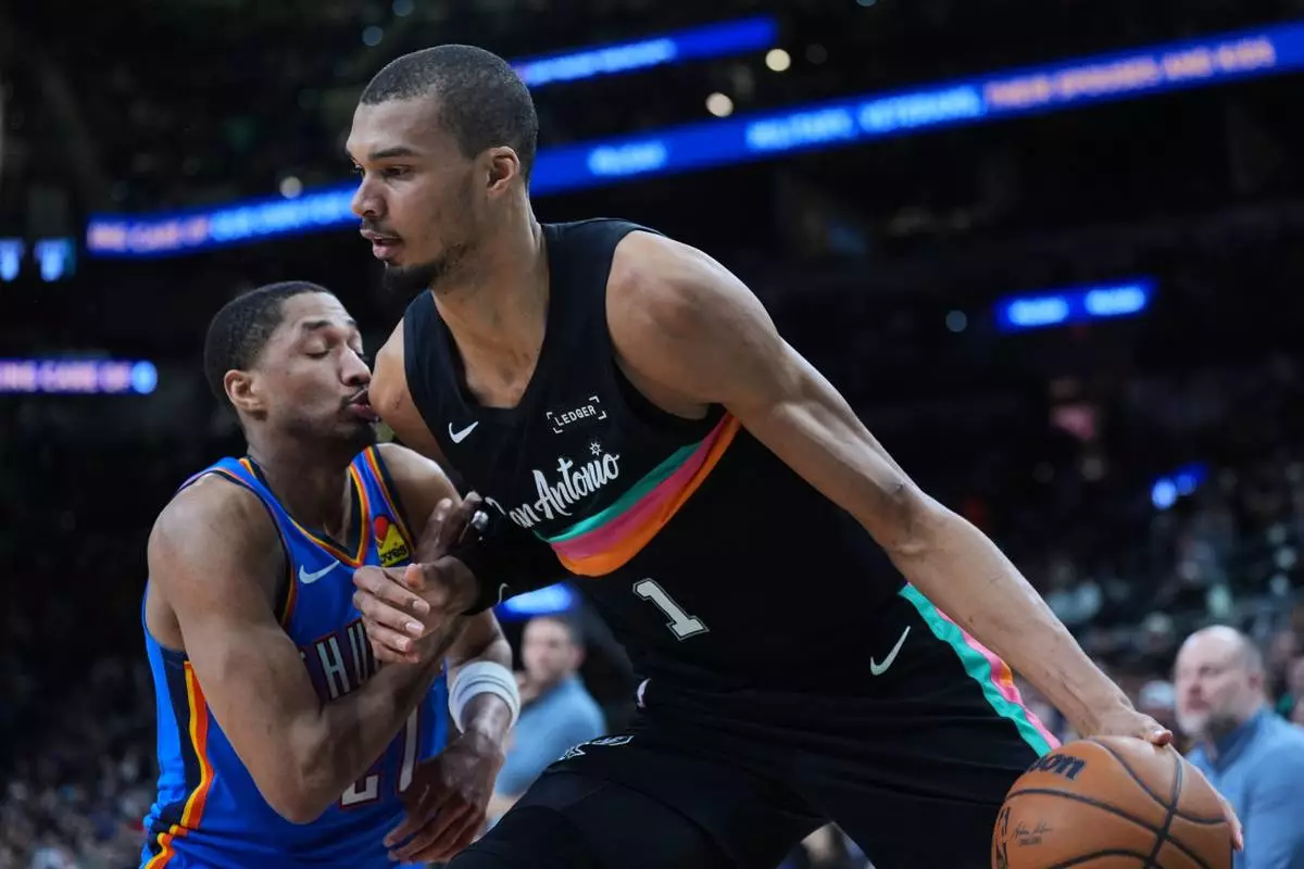 SAN ANTONIO (AP) — Keldon Johnson scored 25 points, Victor Wembanyama had 22 points and 14 rebounds and the San Antonio Spurs never trailed in a 116-106 victory over injury-depleted Oklahoma City on Wednesday night, beating the reigning NBA champion Thunder for a fourth time this season.