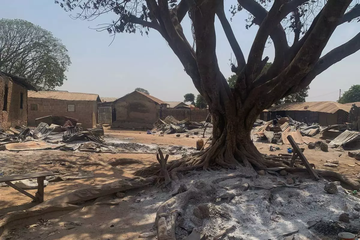 Charred homes and tools are in ruins days after an attack in the village of Woro, Nigeria, Thursday, Feb. 5, 2026. (AP Photo/Musa Salim)