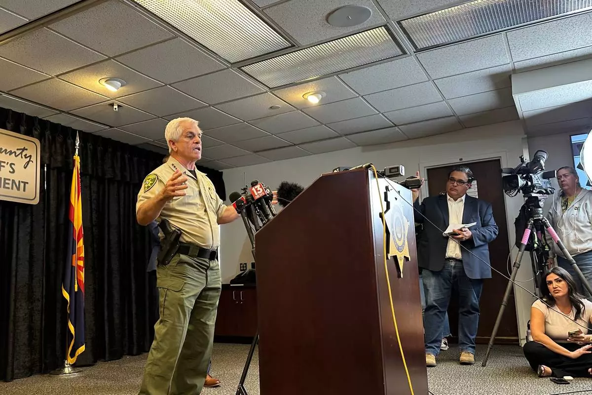 Pima County Sheriff Chris Nanos speaks at a news conference, Tuesday, Feb. 3, 2026, in Tucson, Ariz., to provide updates in the disappearance of Nancy Guthrie, the mother of “Today” show host Savannah Guthrie. (AP Photo/Sejal Govindarao)