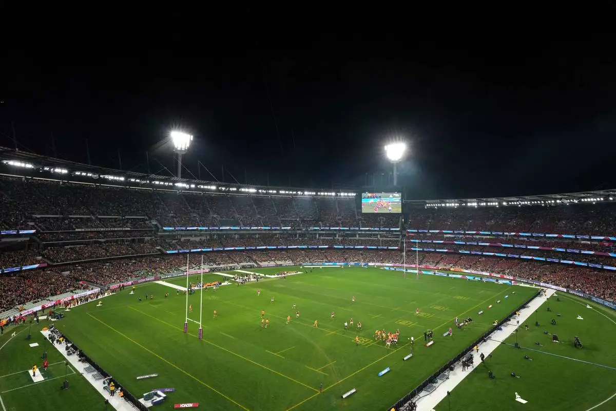 FILE - A general view during the second rugby union test between Australia and the British & Irish Lions at the Melbourne Cricket Ground, in Melbourne, Australia, July 26, 2025. (AP Photo/Asanka Brendon Ratnayake, File)