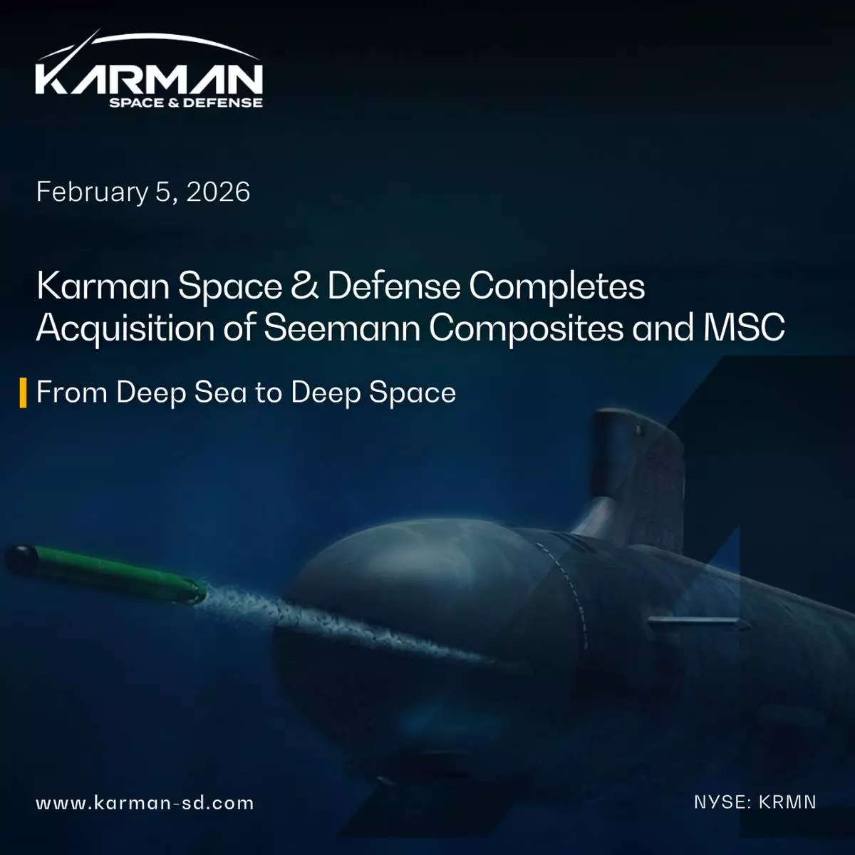Karman Space & Defense (“Karman,” “Karman Holdings Inc.” or “the Company”) (NYSE: KRMN), a leader in the rapid design, development and production of critical, next-generation system solutions that align with the U.S. Department of War’s (“DOW”) core mission priorities and the nation’s accelerating demand for access to space, announced the closing of its previously announced agreement to acquire Seemann Composites and MSC on February 3, 2026, creating a multi-domain leader in critical sub-systems for key space and defense programs.
