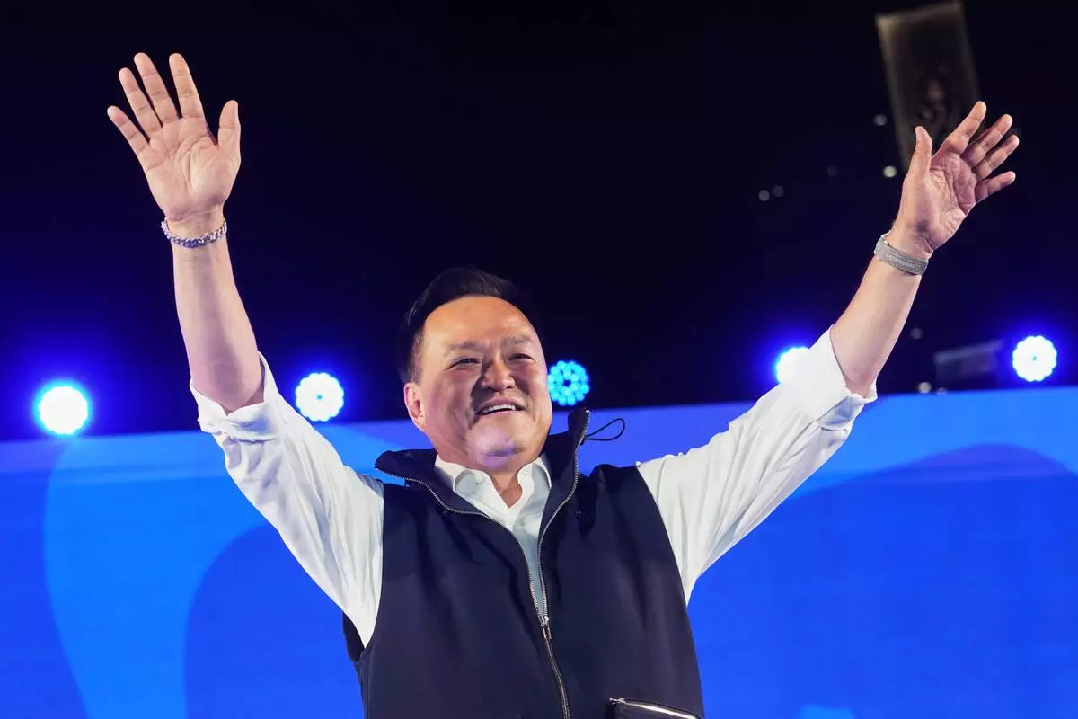 File - Thailand's Prime Minister and leader of Bhumjaithai Party Anutin Charnvirakul, attends an election campaign, in Bangkok, Thailand, Jan. 30, 2026. (AP Photo/Sakchai Lalit, File)