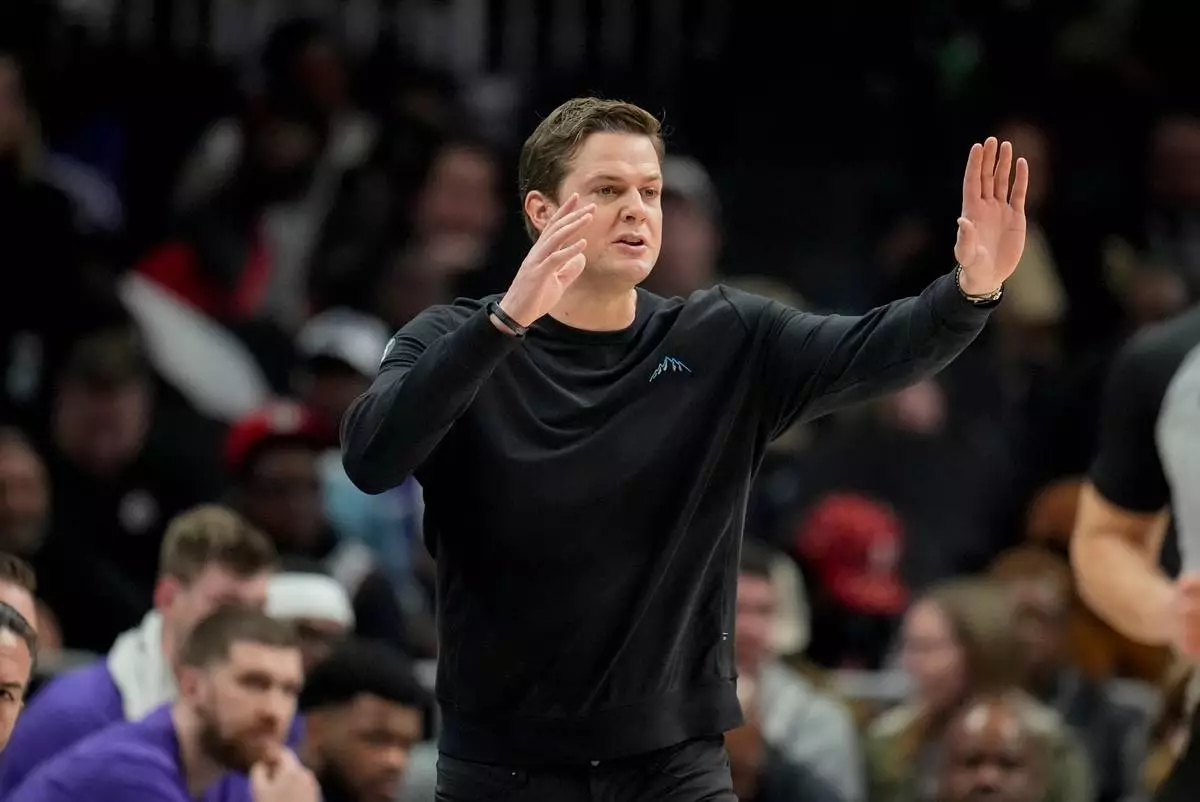 Utah Jazz head coach Will Hardy speaks during the first half of an NBA basketball game against the Atlanta Hawks, Thursday, Feb. 5, 2026, in Atlanta. (AP Photo/Mike Stewart)
