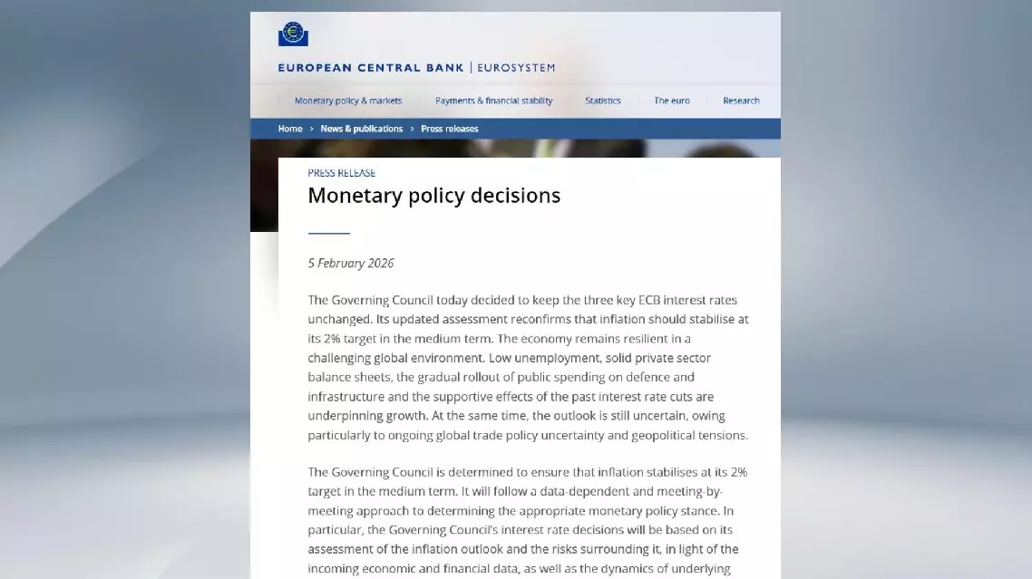The European Central Bank (ECB) on Thursday decided to keep key interest rates unchanged at its first monetary policy meeting of 2026, marking the fifth consecutive hold since July 2025.