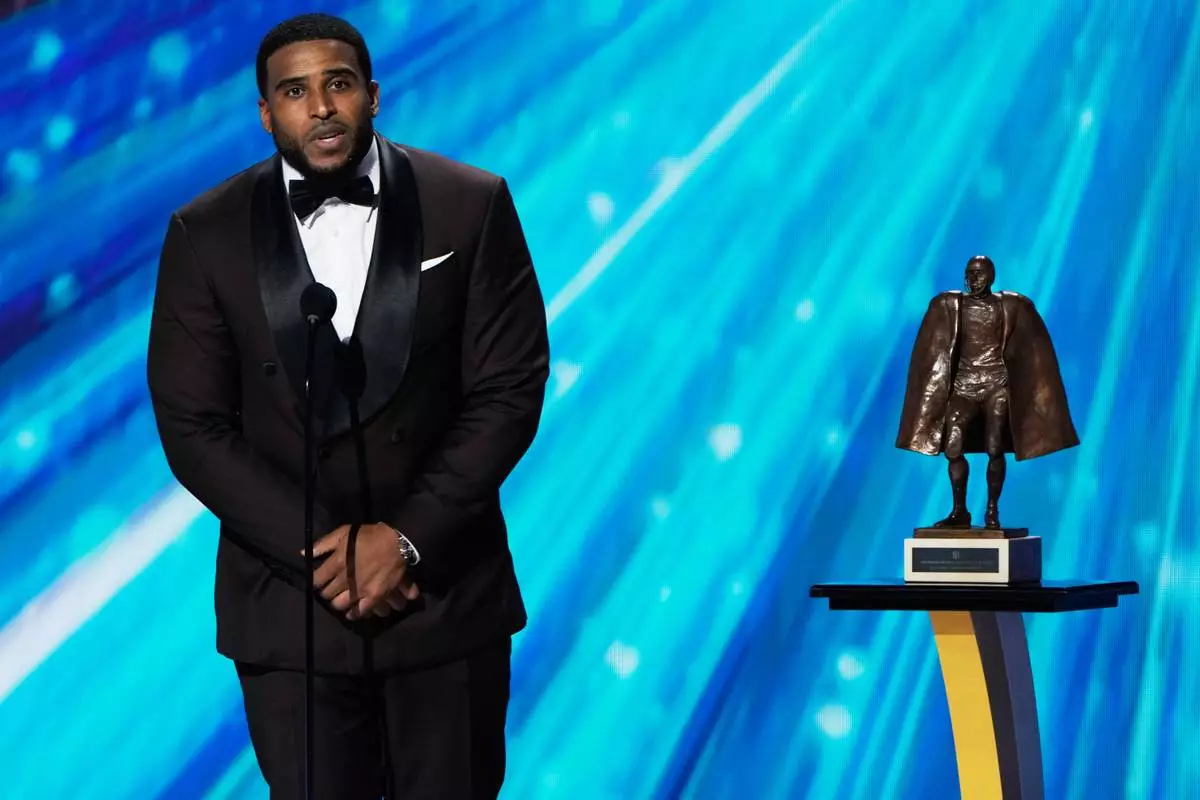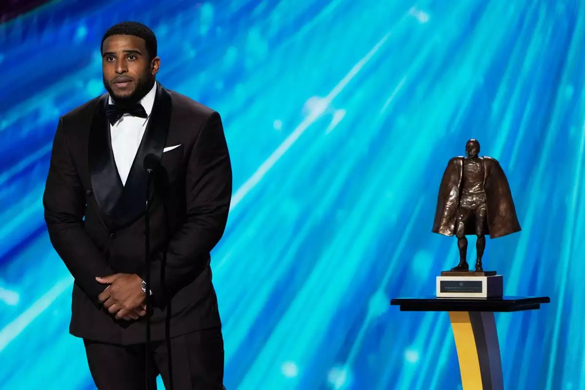 Washington Commanders' Bobby Wagner accepts the Walter Payton NFL Man of the Year award during the NFL Honors award show, Thursday, Feb. 5, 2026, in San Francisco. (AP Photo/Charlie Riedel)