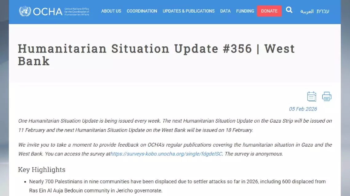According to the UN Office for the Coordination of Humanitarian Affairs (OCHA), violence by Israeli settlers has become the primary driver of forced displacement in the West Bank.