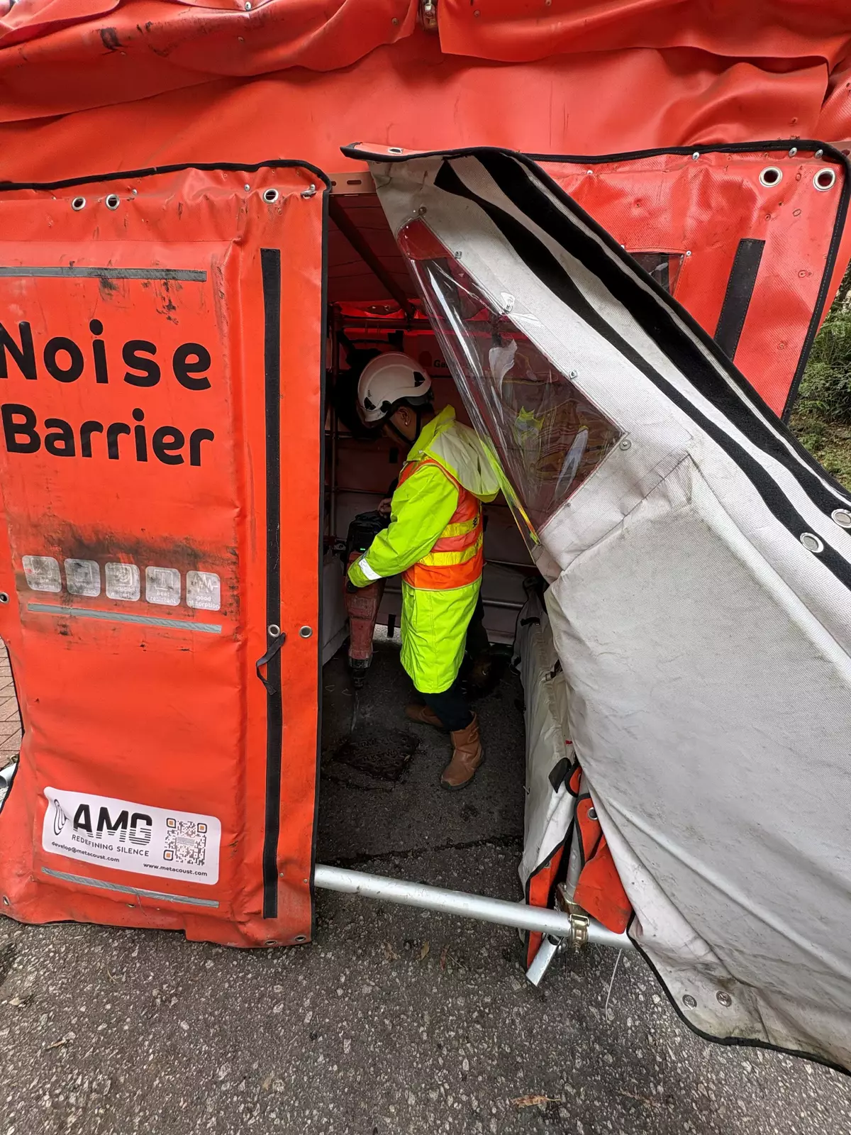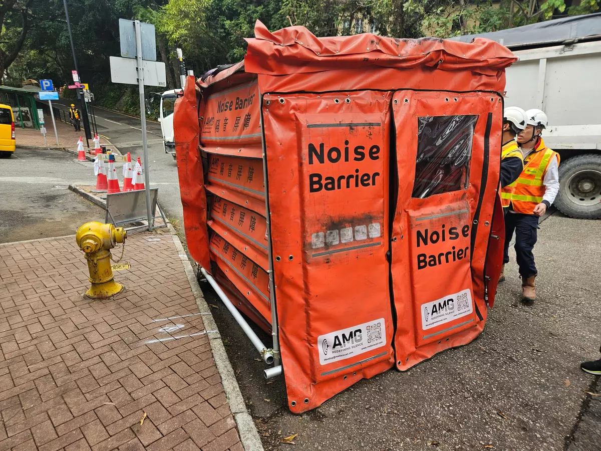 Through co-ordination among the EPD, the HyD, relevant departments and the contractor, the construction work on Wan Tau Kok Lane in Tai Po adopted advanced quiet electric handheld breakers and an acoustic metamaterial enclosure. This successfully reduced the noise levels from road breaking work by 15 decibels A, significantly minimising the impact of the project on nearby residents and the community, thus meeting the needs of residents' daily lives and various community activities.