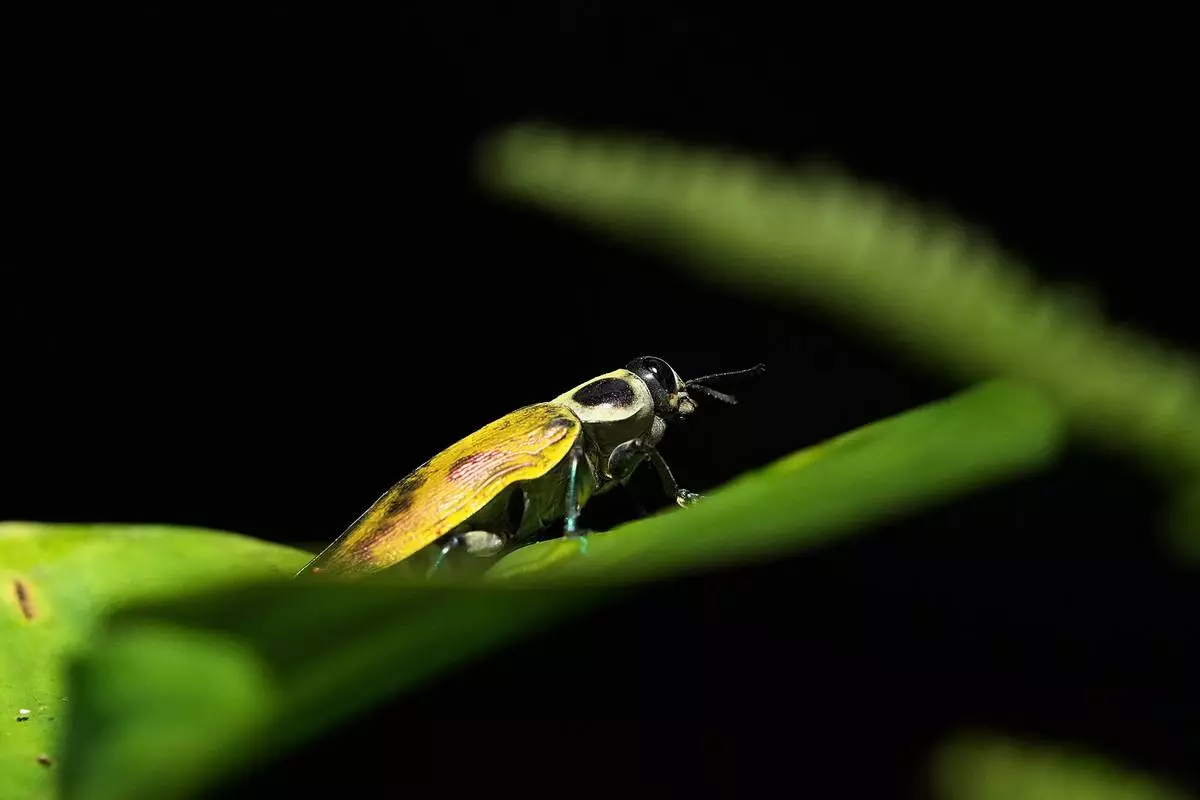 A beetle stands on a leaf on the family farm of Ramon Pucha, which he has turned into a conservation site to preserve native species and promote biodiversity, in Alto Ila, in Ecuador's Amazon region, Tuesday, Feb. 3, 2026. (AP Photo/Dolores Ochoa)