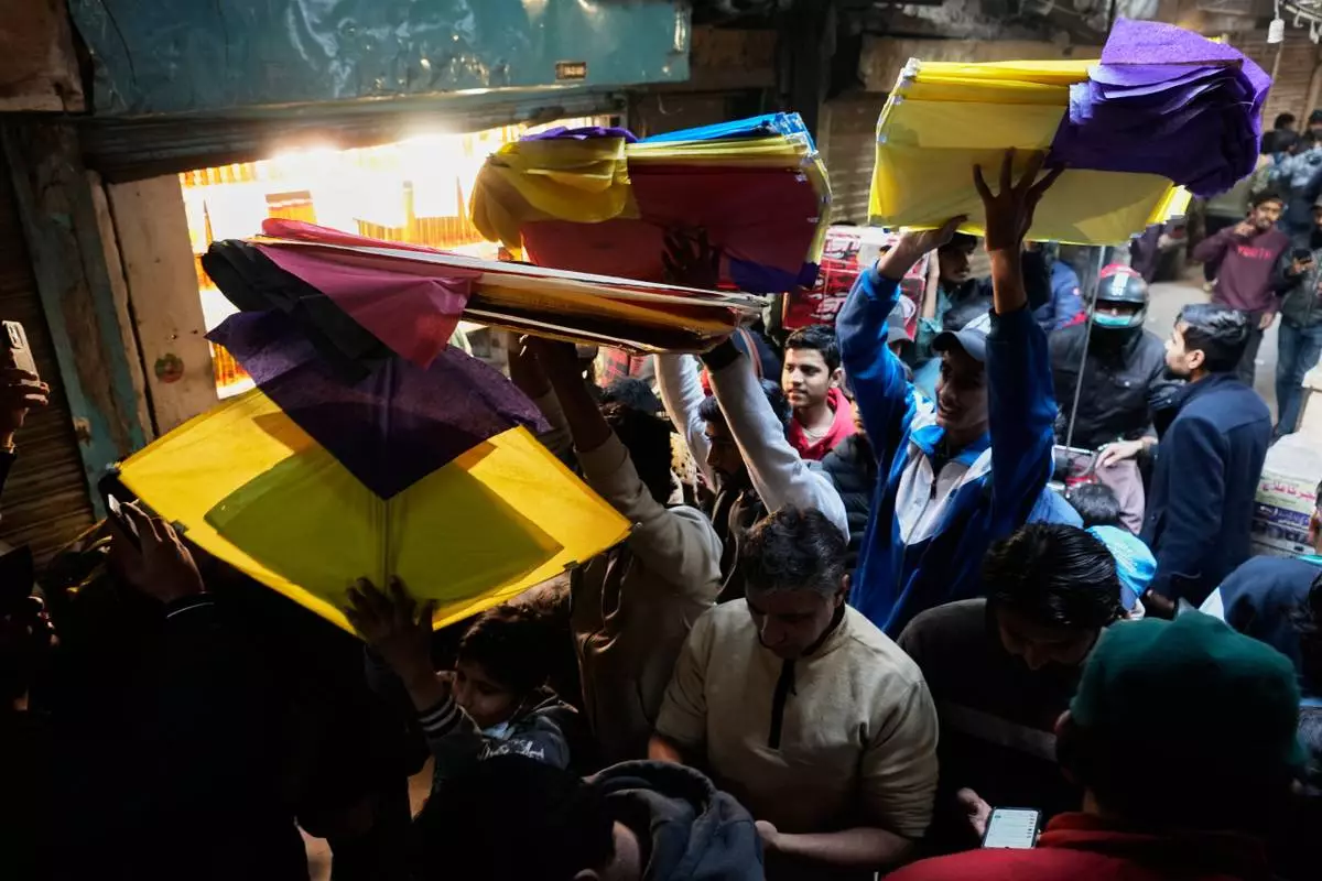 Pakistani hold kites on their way to celebrate the upcoming three-day kite flying festival Basant, in Lahore, Pakistan, Sunday, Feb. 1, 2026. (AP Photo/K.M. Chaudary)