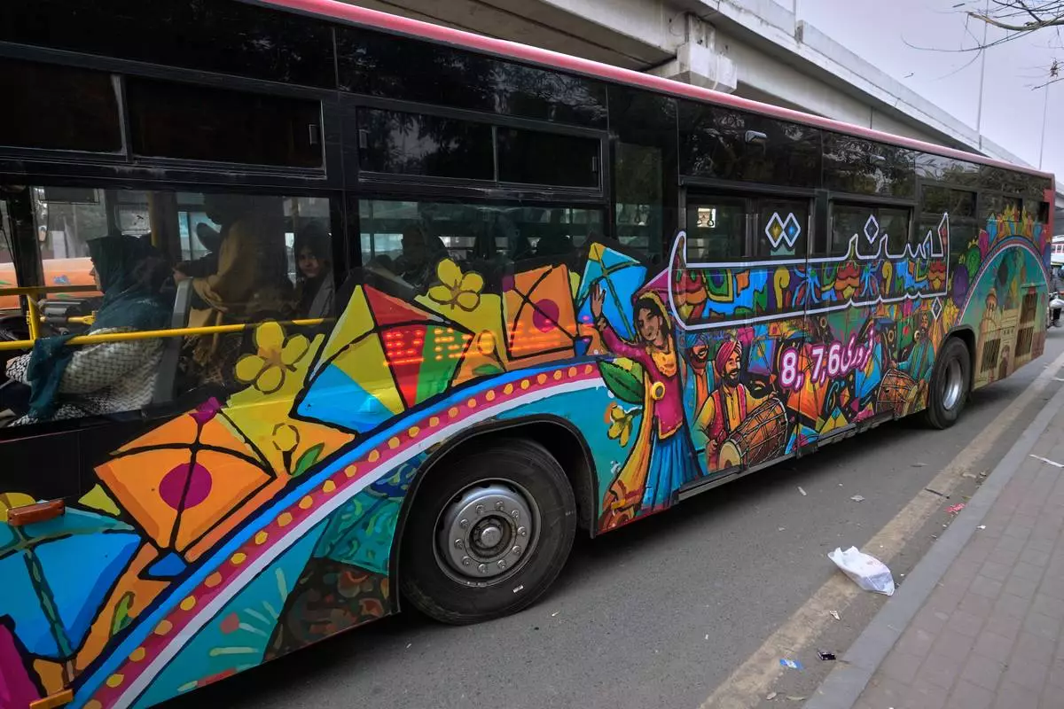 People travel on public transport decorated with colourful kites ahead of the three-day kite flying Basant festival celebrations, in Lahore, Pakistan, Tuesday, Feb. 3, 2026. (AP Photo/K.M. Chaudary)