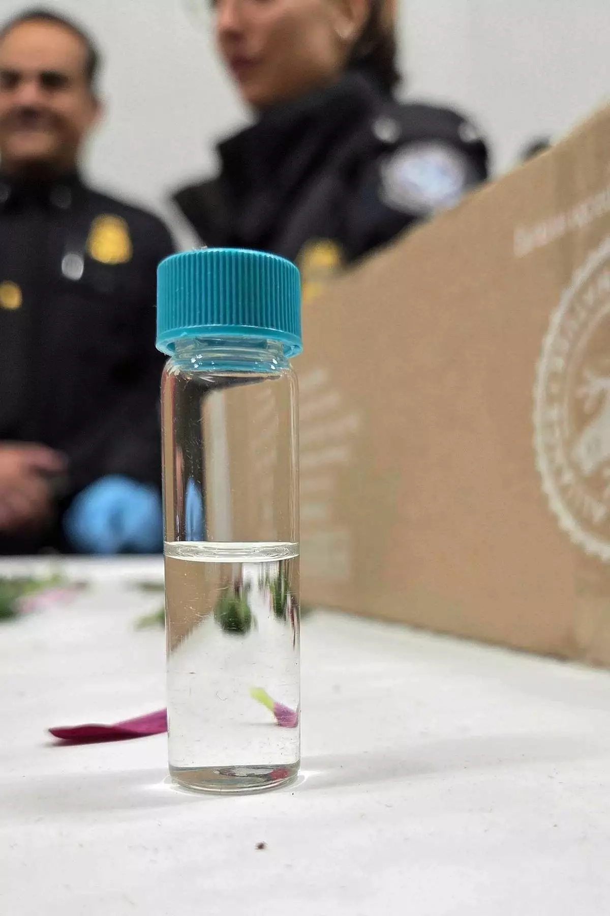 A test tube containing an insect larvae discovered by U.S. Customs and Border Protection agriculture specialists at Miami International Airport, on Friday, Feb. 6, 2026, in Miami. (AP Photo/David Fischer)