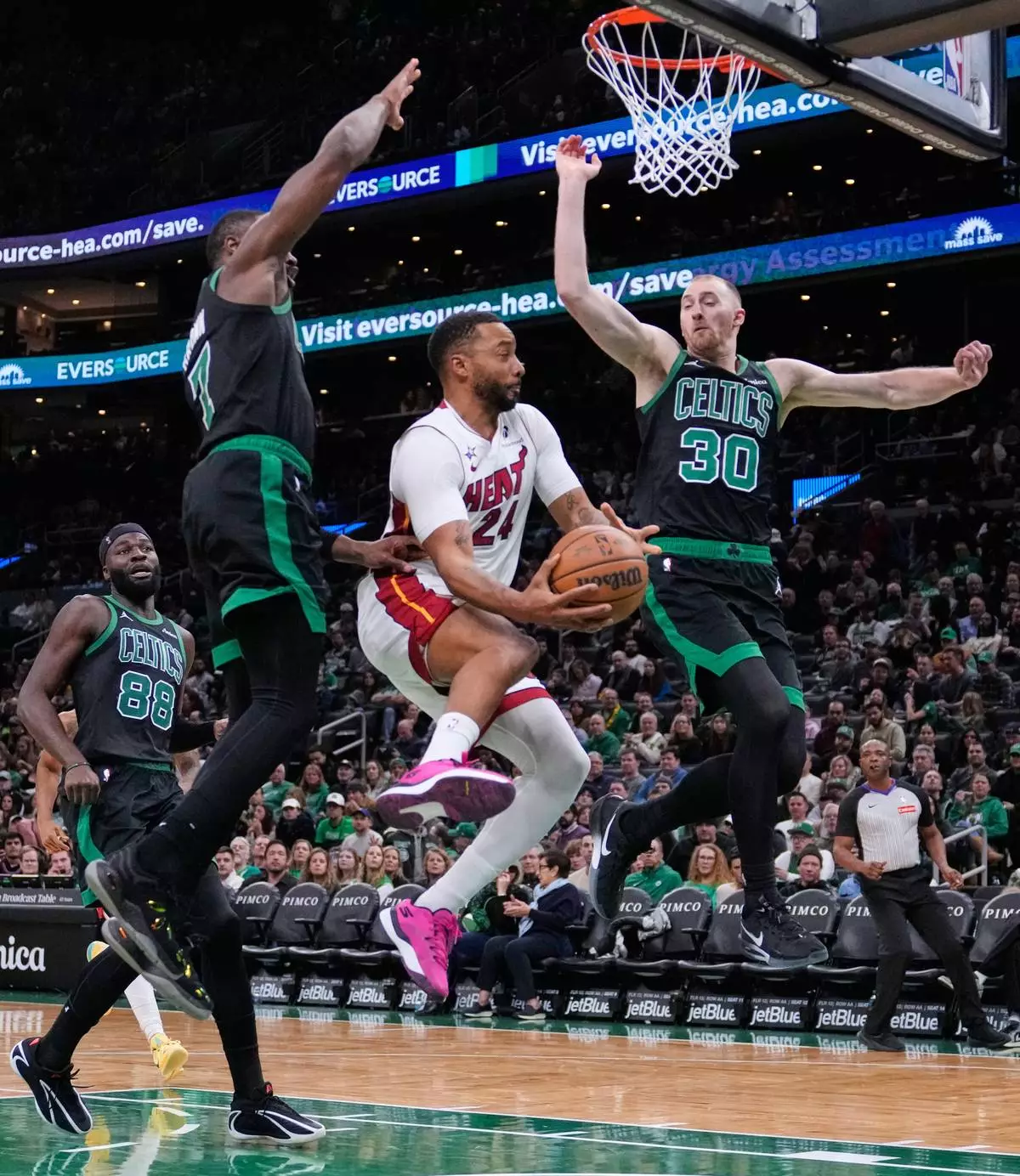 Miami wasted little time serving notice that it would be a long first half for Boston. The Heat jumped out to a 15-2 lead and led by as many 22 points before pulling into halftime up 59-38. The Celtics shot just 28% during the first two quarters, but things changed in the third quarter.