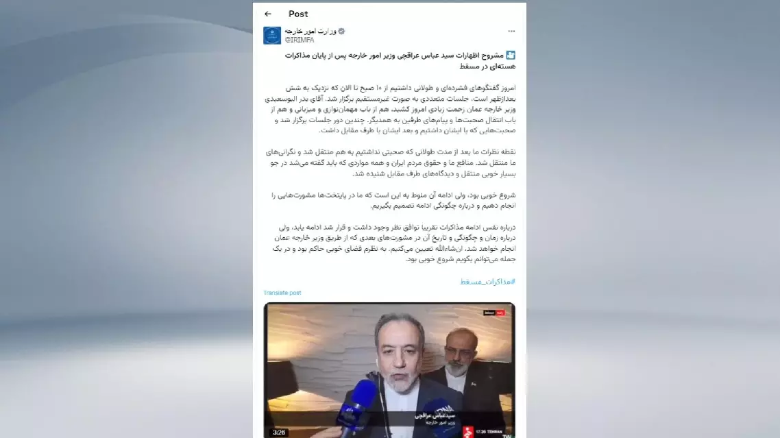 The foreign minister said the talks focused solely on nuclear issues, and that Tehran did not plan to discuss "any other topics" with Washington. However, the U.S. side stressed a broader set of discussions including ballistic missiles, proxies across the region and domestic unrest ahead of the talks.