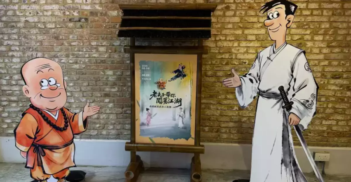 To promote the development of Hong Kong literature and foster cross-disciplinary exchange, the House of Hong Kong Literature, in collaboration with the classic Hong Kong comic book series "Old Master Q", is hosting a cross-disciplinary exhibition "Old Master Q Takes You on a Journey Through the Wuxia World – Hong Kong New Wuxia Novel Exhibition", aiming to enhance youngsters' understanding of local culture via innovative formats.