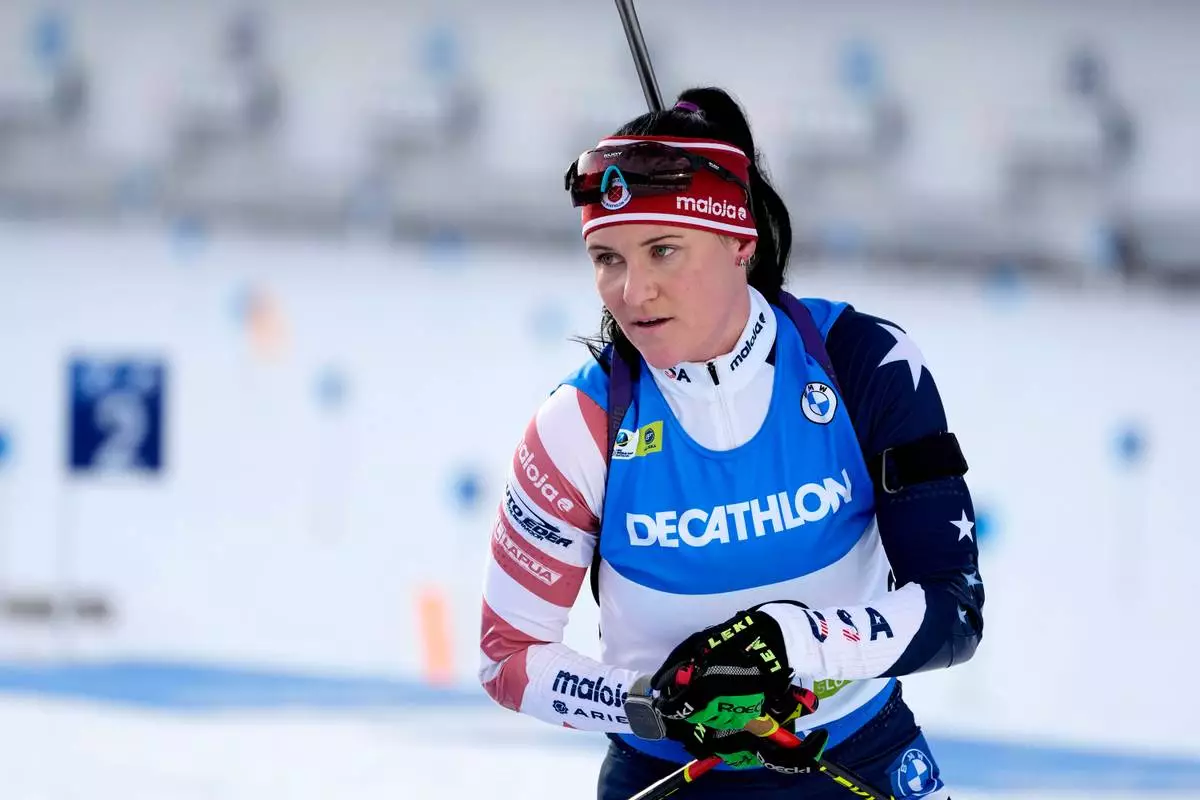 FILE - Joanne Reid, of the United States, competes during the women's 7.5 km sprint competition at the Biathlon World Cup event in Pokljuka, Slovenia, Jan. 5, 2023. (AP Photo/Darko Bandic, File)