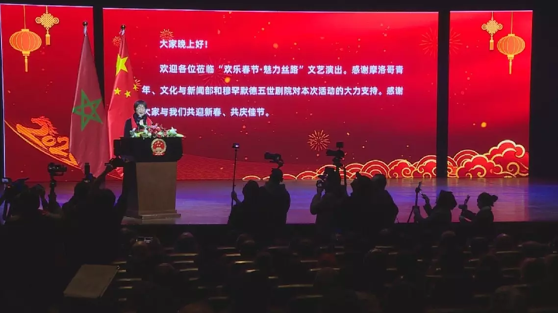 Chinese Ambassador Yu Jinsong welcomed about 1,500 guests, including Moroccan officials, cultural figures and overseas Chinese, with a performance with the theme of "Happy Spring Festival and Charming Silk Road."