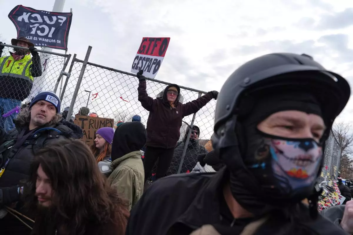 Scores of protesters gathered across the street from the Bishop Henry Whipple Federal Building around midday, throwing bottles and sex toys at a line of police guarding the property. The Hennepin County Sheriff's office said that the arrests began after the crowd started throwing chunks of ice and some property was damaged. A deputy was hit in the head, and a squad vehicle's windshield was smashed, the sheriff's office said on its Facebook page.