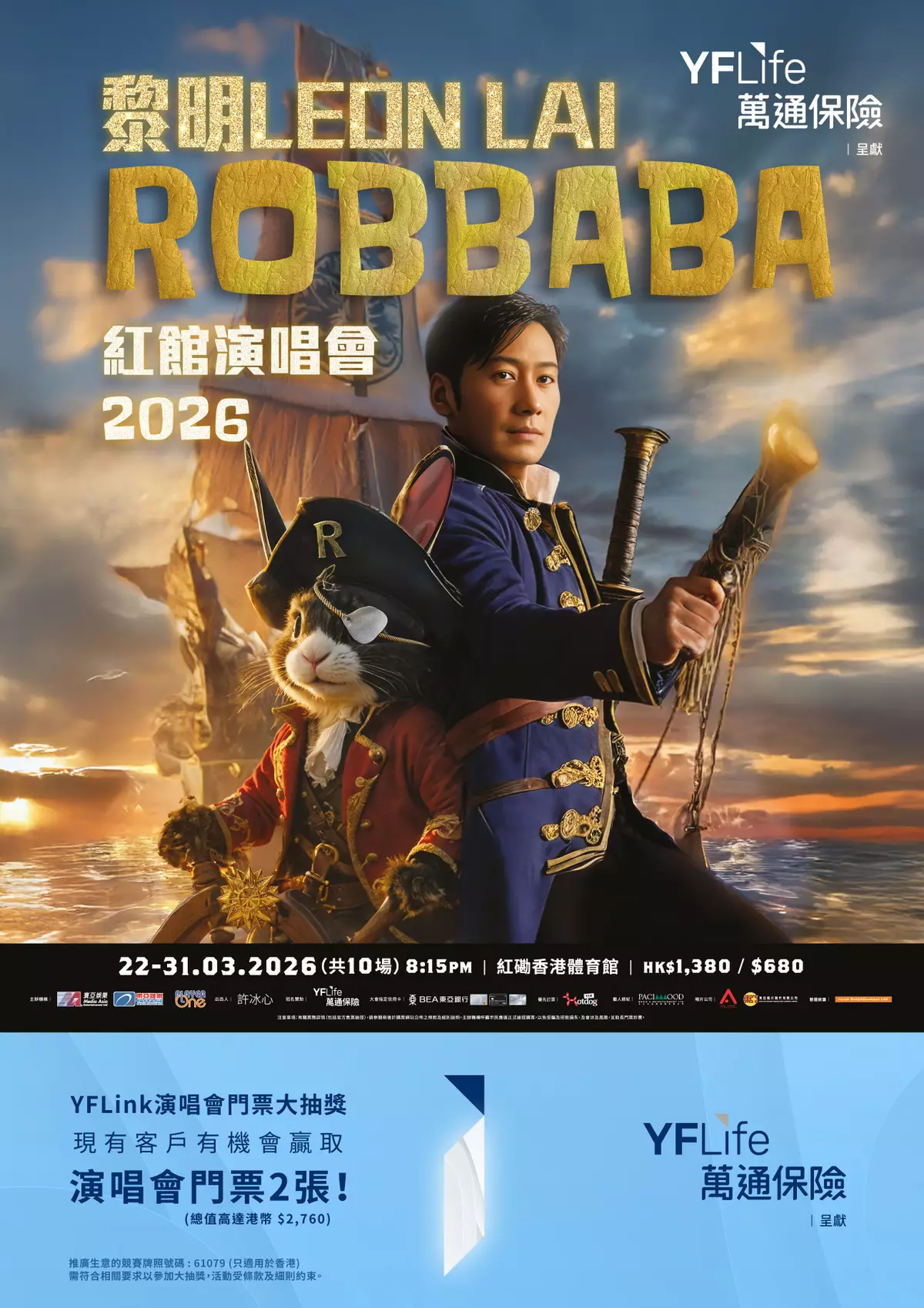 - 2nd prize: Two "YF Life Presents: LEON LAI ROBBABA CONCERT 2026 Live" in Hong Kong concert tickets (each ticket is worth HK$680)