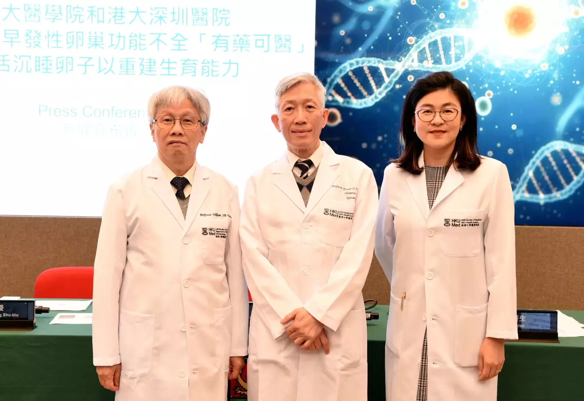 HKUMed reveals that using drugs to treat POI by awakening dormant eggs and facilitating their development into usable antral follicles, is a key breakthrough in restoring fertility (from left: Professor William Yeung Shu-biu, Professor Ernest Ng Hung-yu and Dr Wang Tianren). Photo source: HKUMed