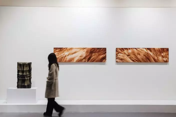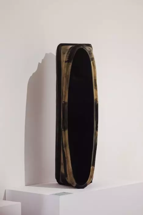 Ou's lacquer art creation explores the relationship between presence and disappearance, and between form and spirit. In the "Shanshui" series, the artist continues the emotional connection to mountains and water of the literati in the Tang and Song dynasties. Using elements such as mountains, water, pools and light as a starting point, he extracts the spirituality of the landscape from paper, embedding it into the fragmented visual experience of contemporary life. The "Monument" series was created using the traditional dry lacquer technique. The trace of each step is gradually covered and softened by the following layer, making it nearly invisible in the finished work.