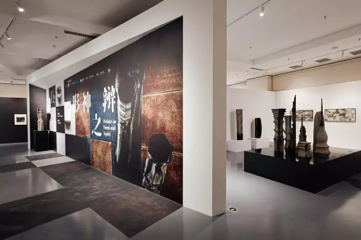 Jointly organised by the Art Promotion Office and the Shenzhen Fringe Art Center, the fourth exhibition "Debate on Form and Spirit" of the "Ink Art Ensembles" Exhibition Series in the Greater Bay Area is on display until March 28 at Xiqiao Mountain Art Museum (Youwei Art Museum) in Foshan. Photo shows Jiangmen artist Ou Tingzhu and his lacquer art sculptures. Source: HKSAR Government Press Releases