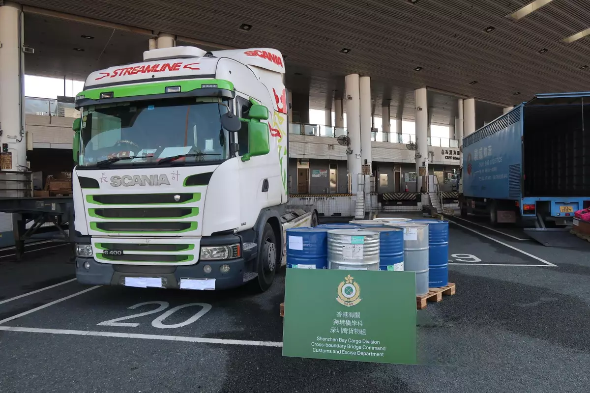 Hong Kong Customs on February 6 detected an illicit fuel smuggling case involving a cross-boundary lorry at the Shenzhen Bay Control Point and found a suspected altered structure inside the fuel tanks of the tractor of the lorry. Approximately 1 320 litres of unmanifested motor spirit were seized along with the arrest of a 66-year-old male driver. The tractor of the lorry was also detained.