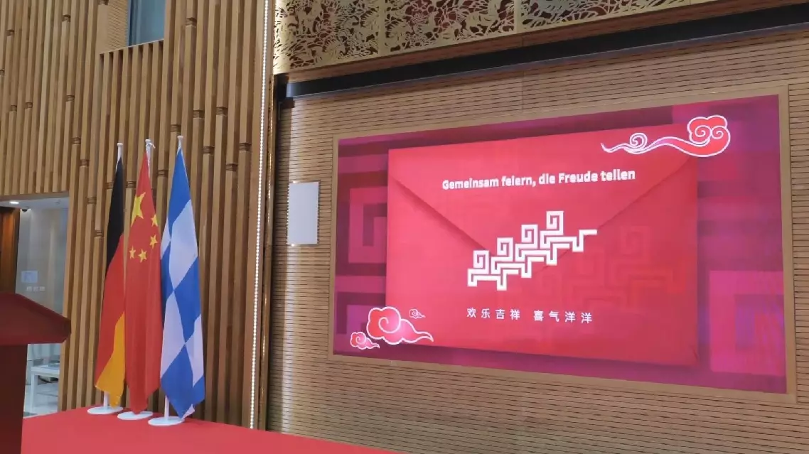 The Chinese Embassy in Germany and the Chinese Consulate General in Munich held receptions to celebrate the upcoming Chinese New Year, featuring artistic performances and the display of the promotional video of China Media Group (CMG)'s Spring Festival Gala.
