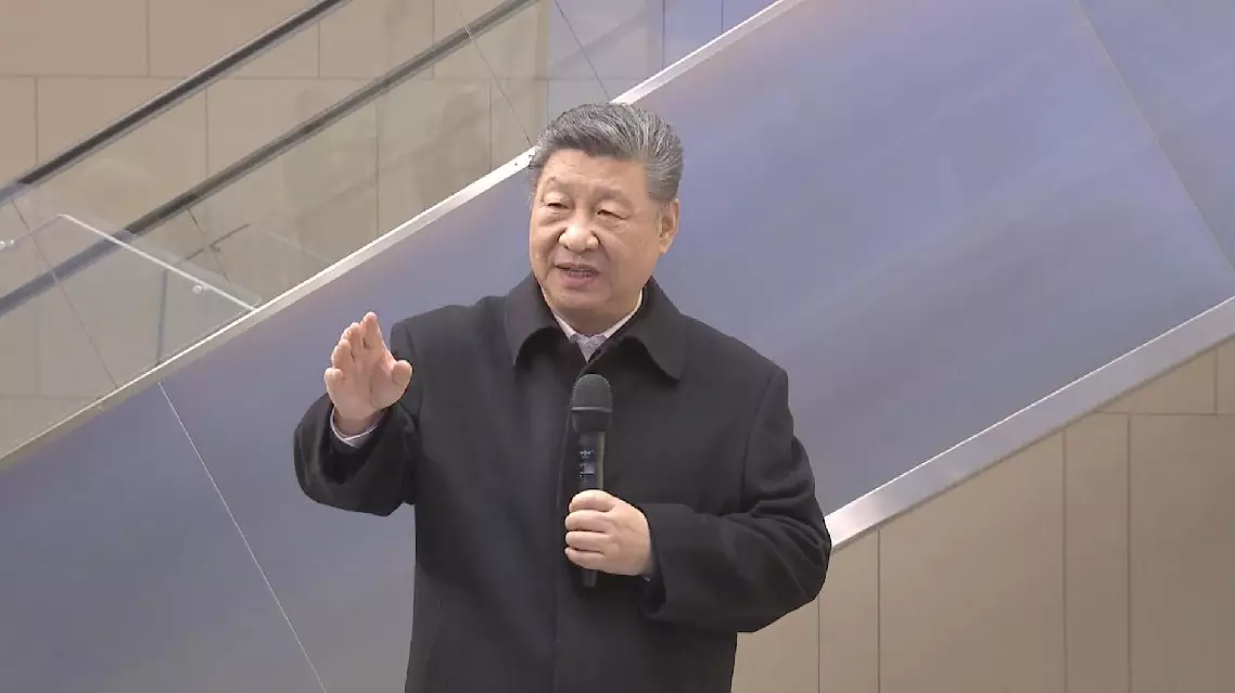 Xi checked the display of sci-tech innovation outcomes, and talked with researchers and heads of sci-tech enterprises.