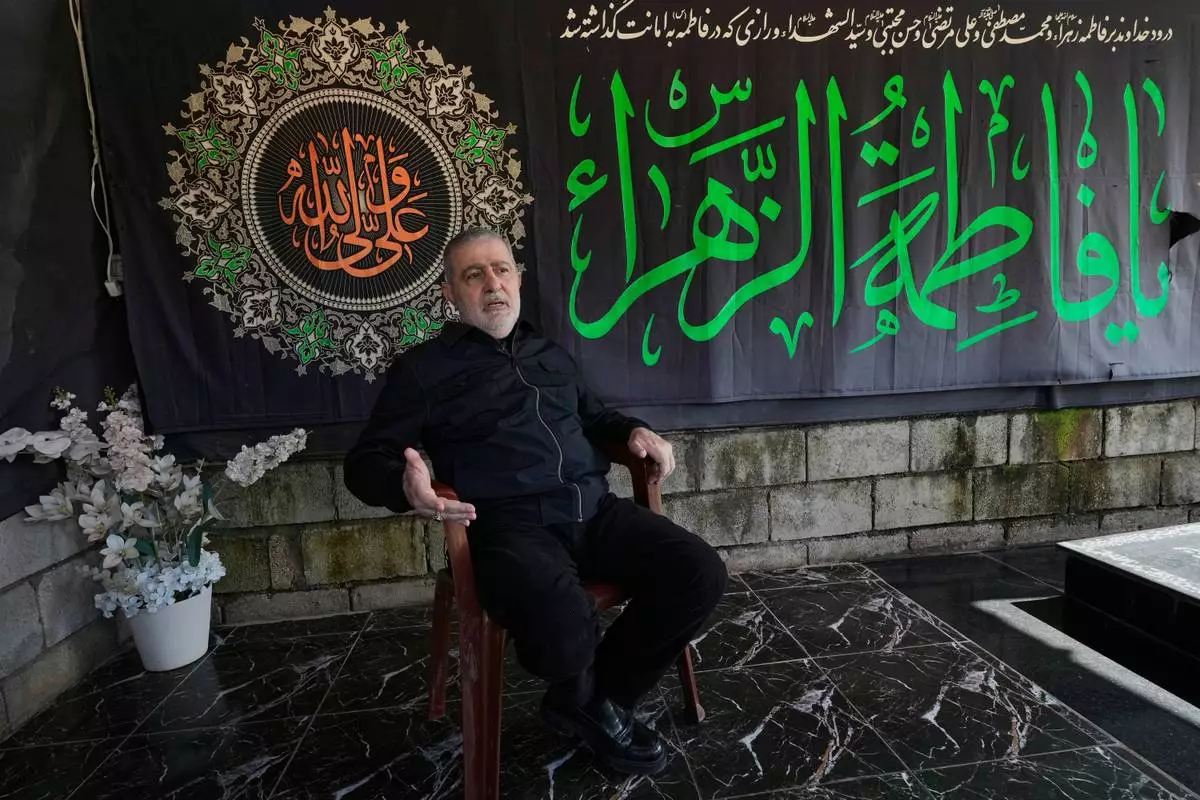 Wafiq Safa, senior Hezbollah political council member, speaks during an interview with The Associated Press in Beirut, Monday, April 13, 2026. (AP Photo/Hussein Malla)