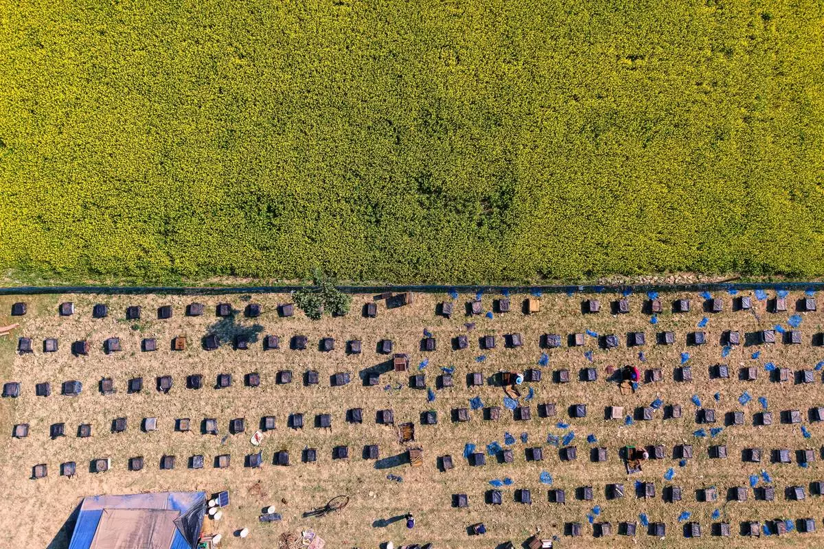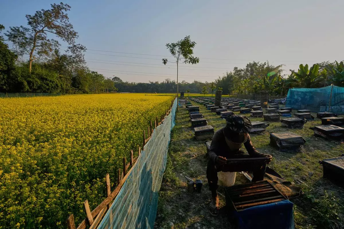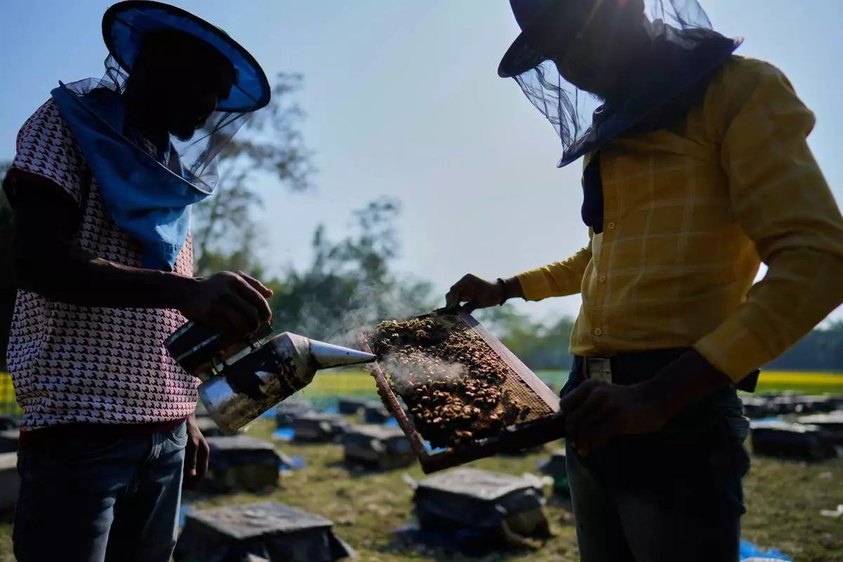 BINNABARI, India (AP) — The beekeepers rise early. They've come a long way to spend the winter months in the electric yellow mustard fields of Assam, and they have to make the trip worth it.