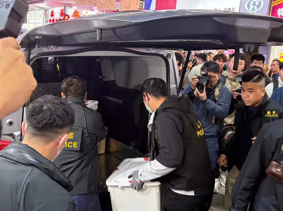 The Commercial Crime Bureau of the Hong Kong Police Force raided a law firm in Mong Kok on the evening of February 9th, deploying a large number of police force and seizing a significant amount of physical evidence. Photo by Bastille Post