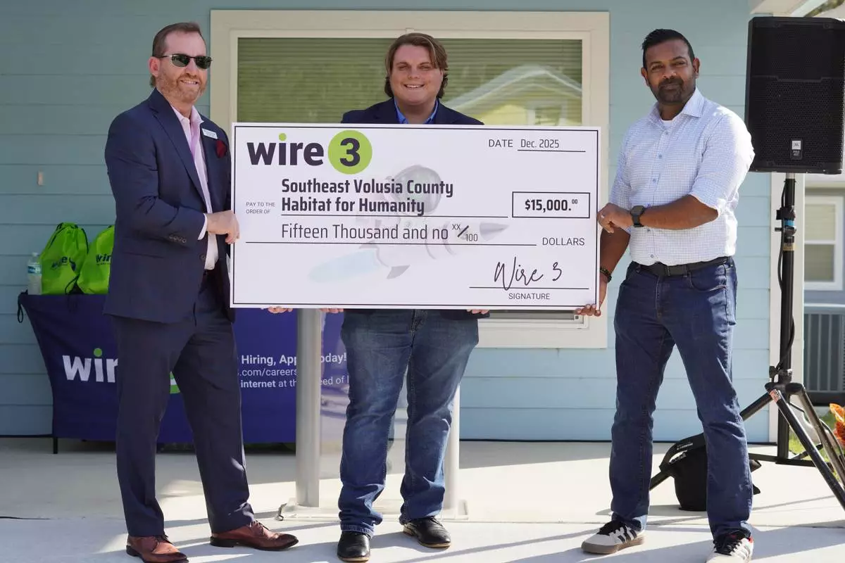 Wire 3 presented Second Harvest Food Bank of Central Florida with a $10,000 donation, providing more than 40,000 meals to families across the region. Additionally, Wire 3 pledged one year of free 250 Mbps internet service to 100 Habitat for Humanity homes, alongside a $15,000 donation to support Habitat’s mission of building affordable housing throughout Southeast Volusia. Together, these efforts underscore Wire 3’s commitment to strengthening Florida communities and ensuring families have the connectivity they need for school, work, and simply everyday life.