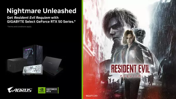 TAIPEI, Feb. 11, 2026 /PRNewswire/ -- GIGABYTE, the world's leading computer brand, collaborates with NVIDIA for the Resident Evil™ Requiem game bundle across eligible graphics cards, desktops, and laptops powered by NVIDIA GeForce RTX™ 5070 or above GPUs or Laptop GPUs. Powered by NVIDIA Blackwell architecture, the GeForce RTX™ 50 Series GPUs bring game-changing capabilities to gamers and creators. Equipped with a massive level of AI horsepower, the RTX™ 50 Series enables new experiences and next-level graphics fidelity. Combined with GIGABYTE's cutting-edge cooling designs, the bundle aims to unleash smoother gameplay and a more immersive Resident Evil Requiem gaming experience.