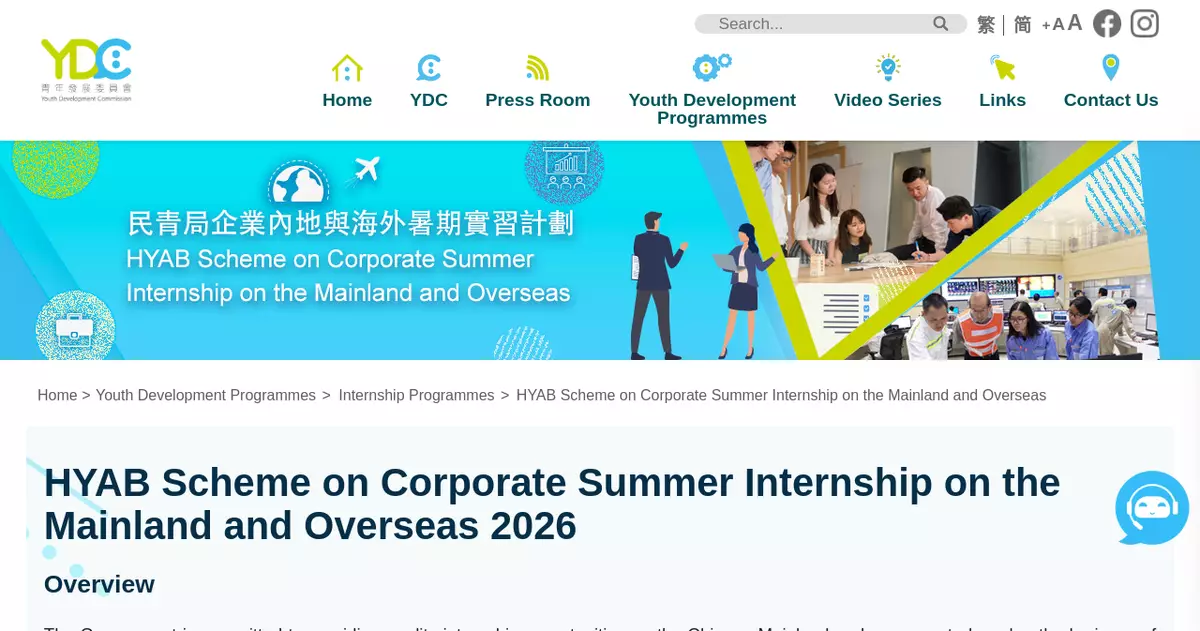 In the 2025 Policy Address, the Chief Executive emphasised that the Government would sustain its efforts in promoting youth development on all fronts. This includes continuing to implement various exchange and internship programmes on the Mainland and overseas to help young people broaden international horizons and cultivate a holistic outlook. In this regard, the Home and Youth Affairs Bureau forged partnerships with large corporates to launch the HYAB Scheme on Corporate Summer Internship on the Mainland and Overseas for Hong Kong youth to intern at the Mainland and overseas operations of these corporates. The Scheme will help young people learn and experience first-hand the national development and international trends, and at the same time provide them with exposure to the work culture in large corporates and the opportunity to establish interpersonal networks outside Hong Kong, enabling them to accumulate invaluable work experience and lay a foundation for future career development.