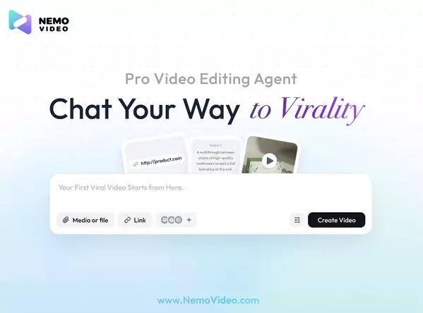 NemoVideo is the First-ever Pro-Grade, Effortless, and Cost-effective Video Editing Agent for creators and marketers to "Chat Your Way" to Viral Videos