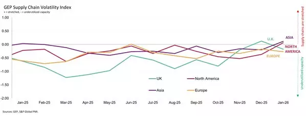 CLARK, N.J., Feb. 11, 2026 /PRNewswire/ -- GEP Global Supply Chain Volatility Index — a leading indicator tracking demand conditions, shortages, transportation costs, inventories and backlogs, based on a monthly survey of 27,000 businesses — showed a marked bounce back in procurement activity in January.