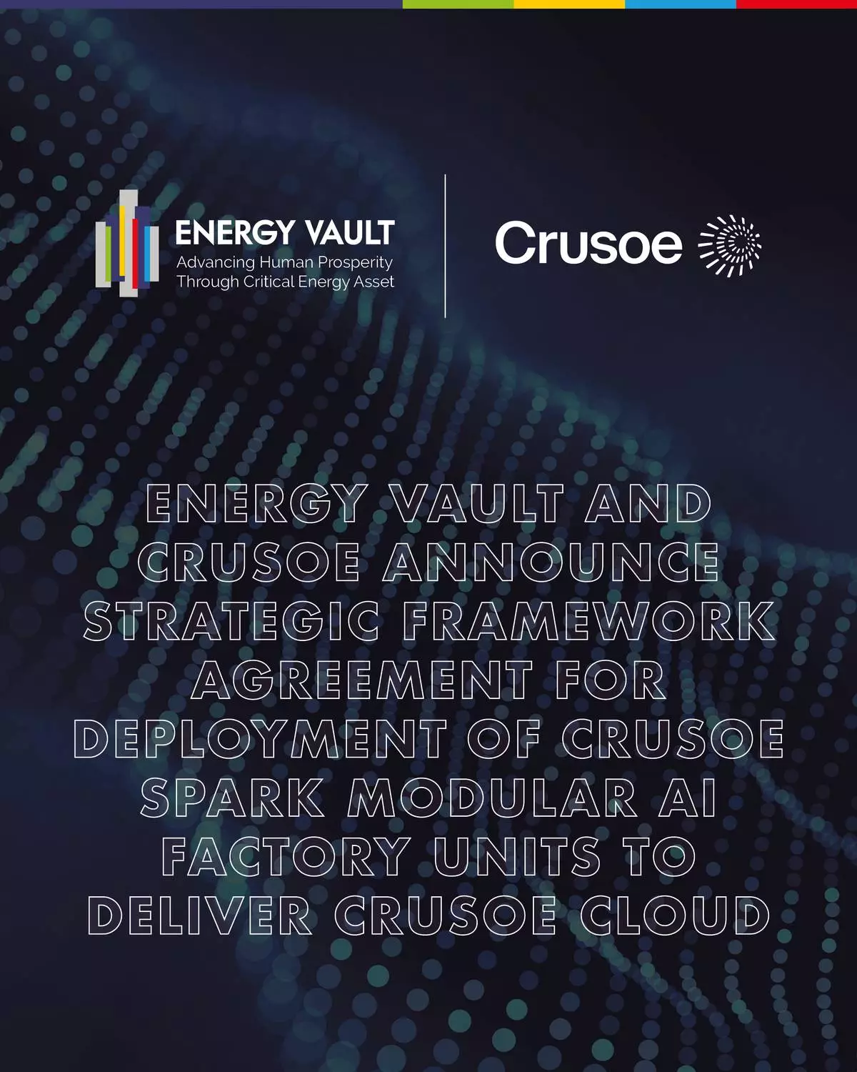 Energy Vault and Crusoe Announce Strategic Framework Agreement for Deployment of Crusoe Spark Modular AI Factory Units to Deliver Crusoe Cloud
