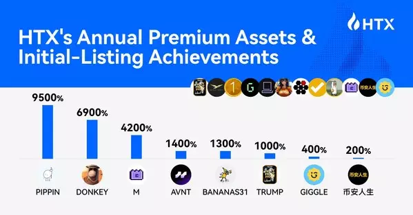A review of HTX's newly listed assets in 2025 shows the platform listed 166 new assets over the year, spanning AI, memecoin, Layer1/Layer2, RWA, stablecoins, and DeFi. 96 assets recorded post-listing gains exceeding 100%, while 9 surged more than 1,000%. The top performer, PIPPIN, achieved a peak increase of 9,500%.