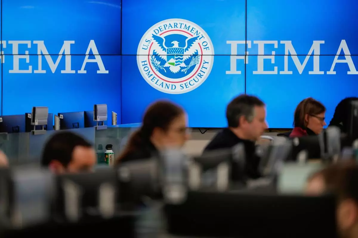 FILE - People work at the Federal Emergency Management Agency headquarters in Washington, on Saturday, Jan. 24, 2026. (AP Photo/Julia Demaree Nikhinson, File)