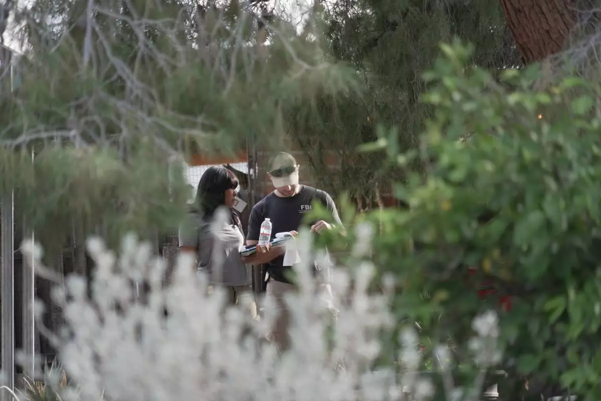 Law enforcement agents check vegetation areas around Nancy Guthrie’s home in Tucson, Ariz., Wednesday, Feb. 11, 2026. (AP Photo/Ty ONeil)