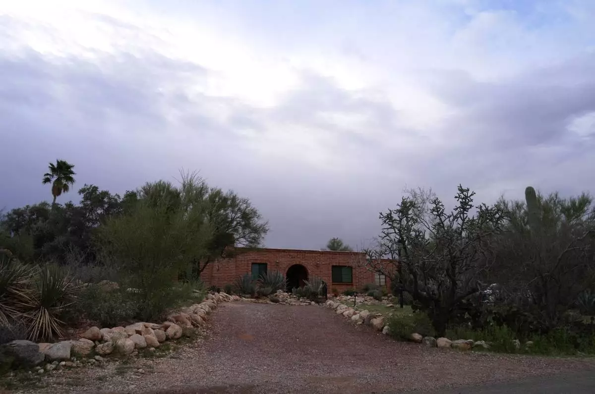 Nancy Guthrie’s home is seen in the early morning under cloudy skies on Friday, Feb. 13, 2026 in Tucson, Ariz. (AP Photo/Ty ONeil)