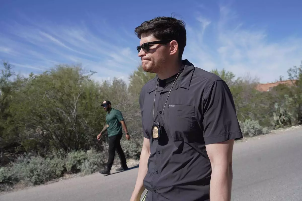 Law enforcement agents check vegetation areas around Nancy Guthrie’s home in Tucson, Ariz., Wednesday, Feb. 11, 2026. (AP Photo/Ty ONeil)