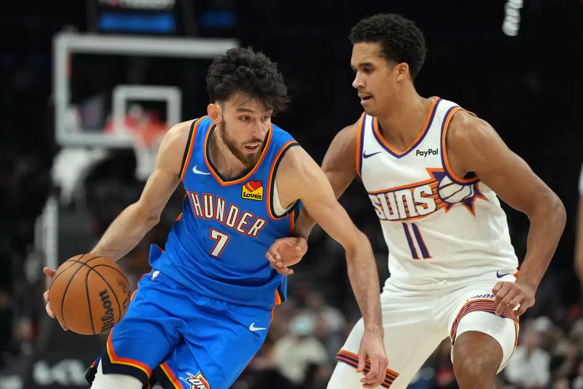 Kenrich Williams added 15 points and Chet Holmgren had 13. The defending champion Thunder — who have won four of six — shot 58.4% from the field and got 74 points from players coming off the bench.