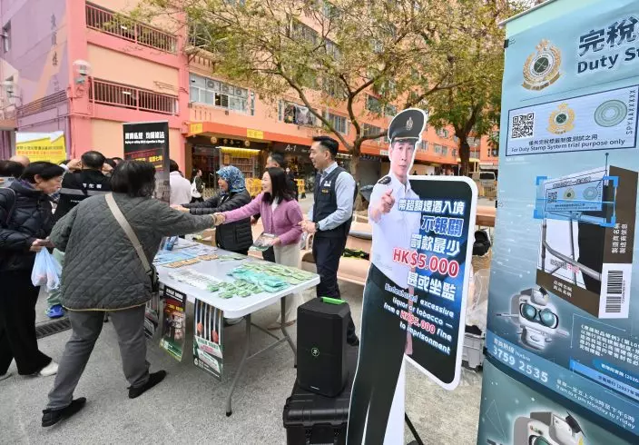 Customs officers also introduced the Duty Stamp System to be implemented in Hong Kong to the council members, residents, newspaper stall keepers and cigarette retailers. The three-month Pilot Run for the Duty Stamp System launched by Customs concluded early this year. Customs will continue to maintain close communication with all stakeholders and optimise the design and implementation details of the system. Customs plans to implement the first phase of the Duty Stamp System in the fourth quarter this year, with full implementation in the second quarter of 2027, thus achieving the ultimate goal of effective distinguishment of duty-paid cigarettes from duty-not-paid ones, and to combat "cheap whites".