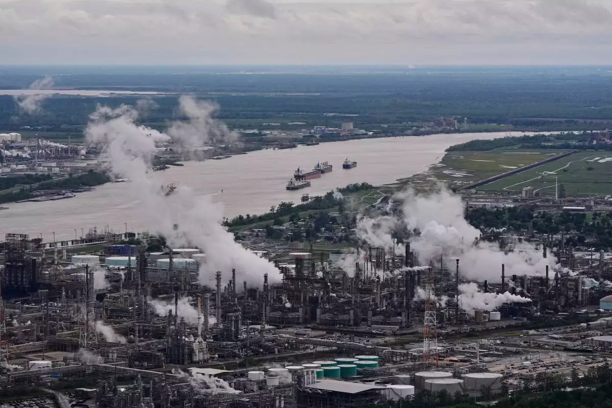 FILE - The Shell Norco oil refinery operates in Norco, La., April 7, 2025. (AP Photo/Gerald Herbert, File)